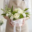 Белые розы и клубника в крафте