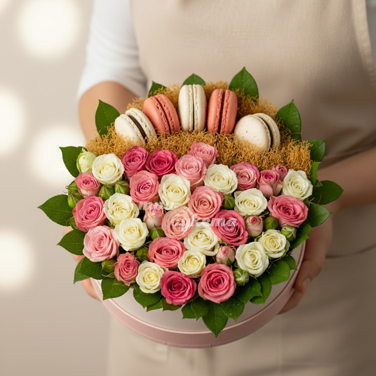 5 макарун с кустовыми розами