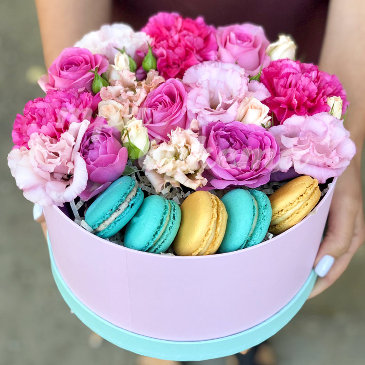 5 макарун с розами и эустомой