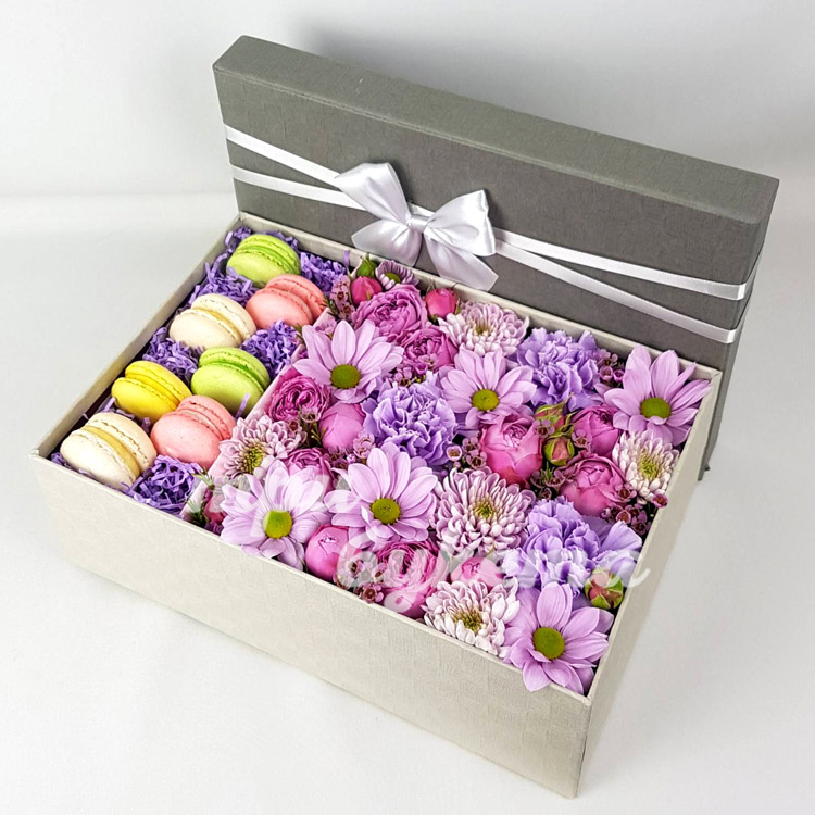 7 макарун с розами и хризантемами