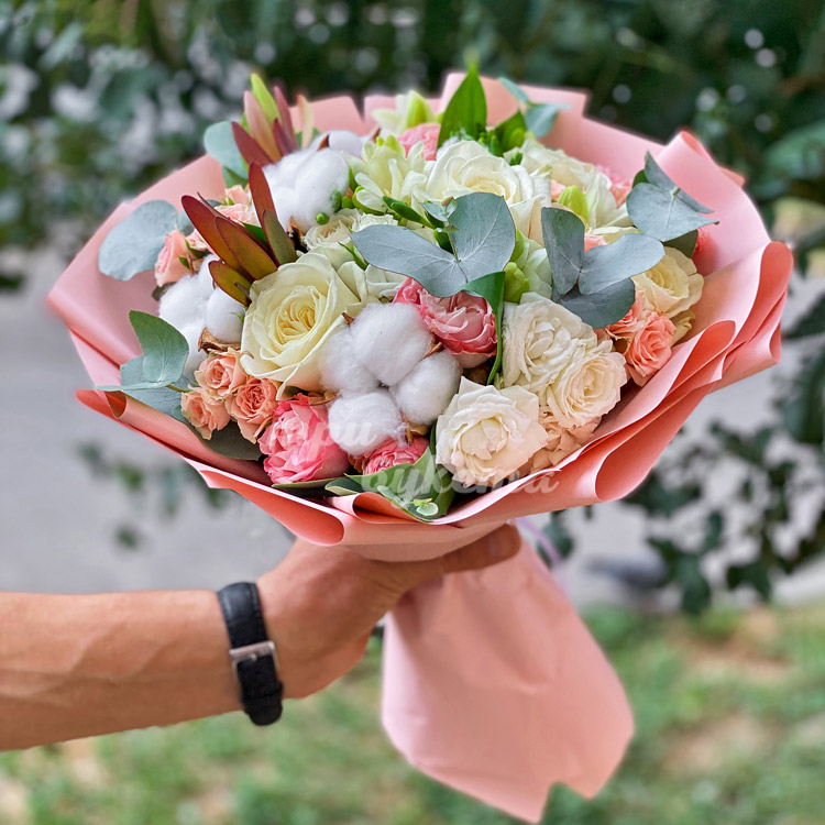 Букет цветов с хлопком и эвкалиптом