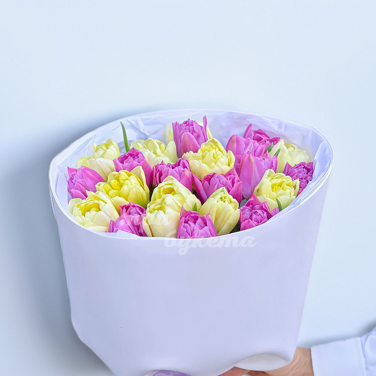Букет из 23 розовых и белых тюльпанов