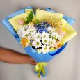 Букет из гвоздик, эустом и гортензии