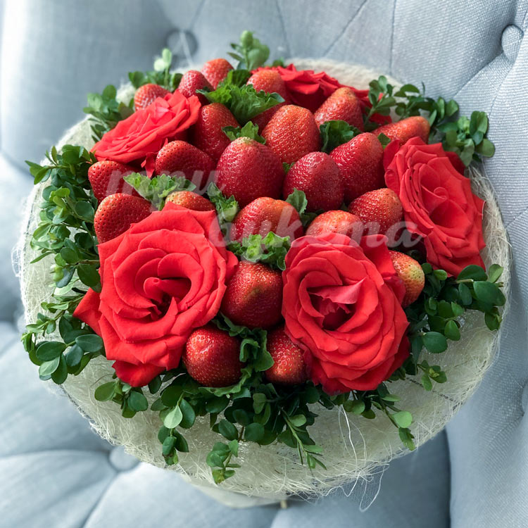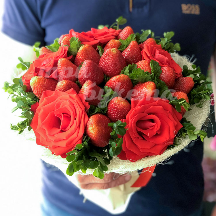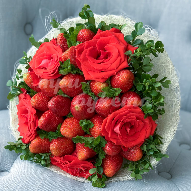 Букет из клубники и 5 алых роз
