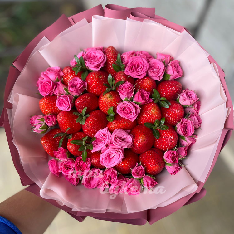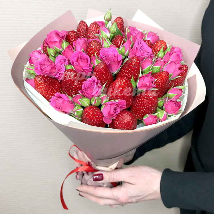 Букет из роз и клубники