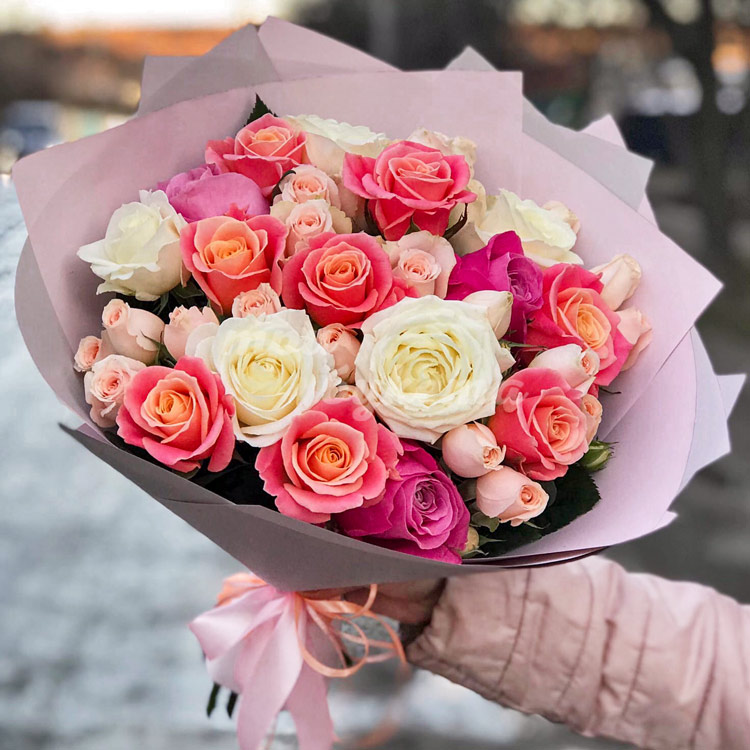 Букет микс из 25 разноцветных роз