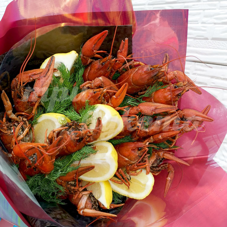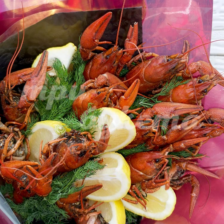 Букет раков с лимоном и укропом