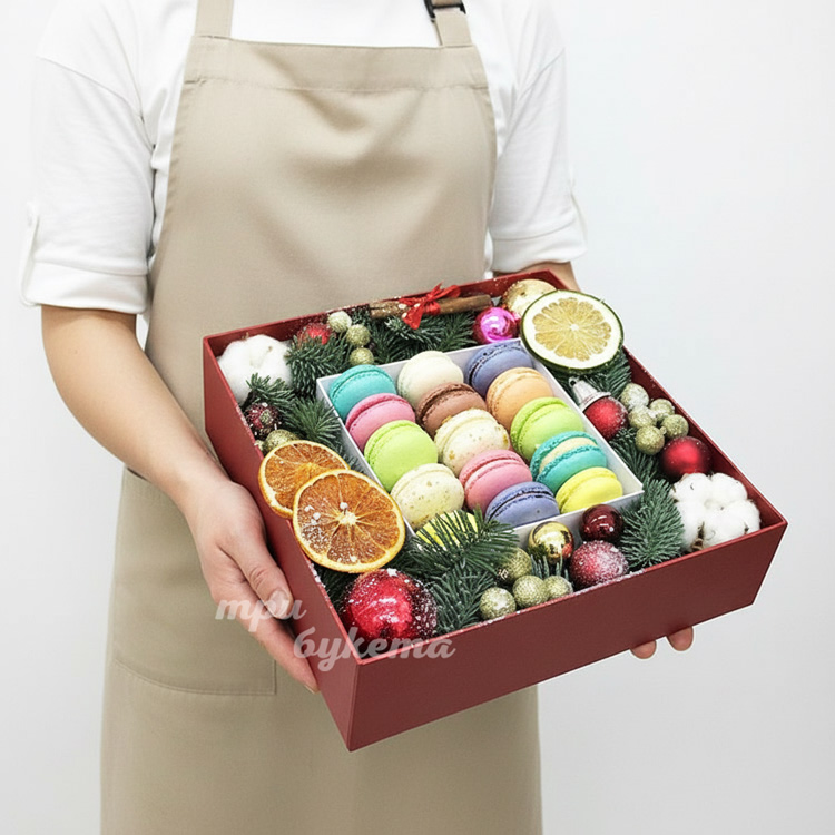 Коробочка хвои с макарунами