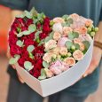 Коробочка с розовыми розами и эвкалиптом