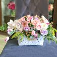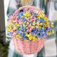 Корзина французских роз, хризантем и эустом