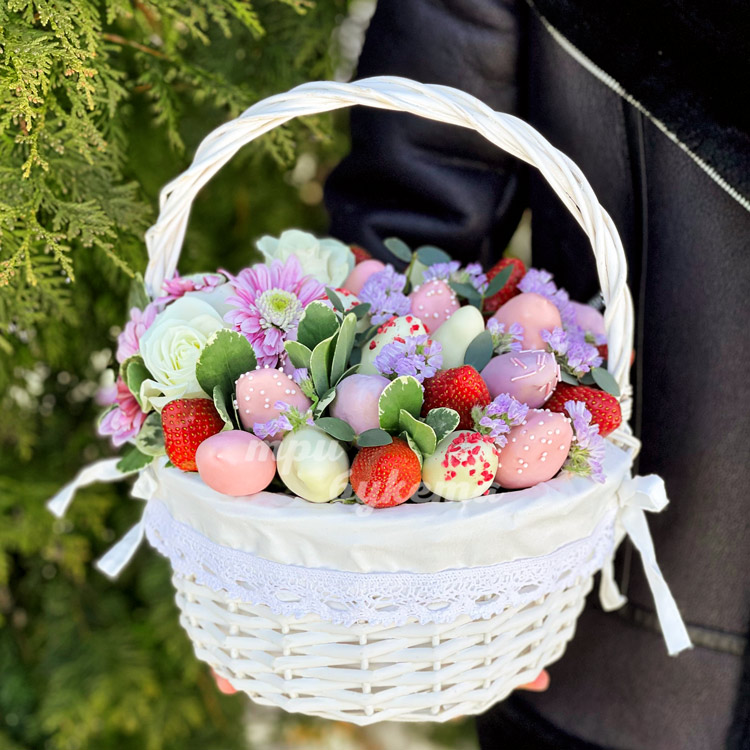 Корзина клубники с лимониумом