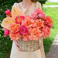 Корзина розовых куст. роз с гипсофилой
