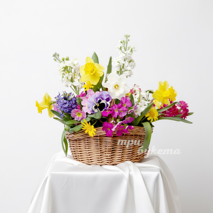 Корзина с нарциссами и гиацинтами