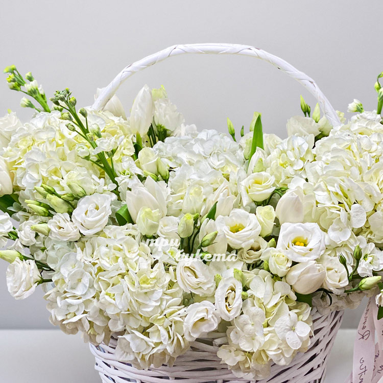 Корзина тюльпанов и гортензий