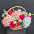 Пионовидные розы и гортензии в ящике