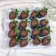 Пионовидные розы и ягоды в коробке