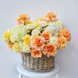 Яркая корзина гвоздик, роз и маттиол