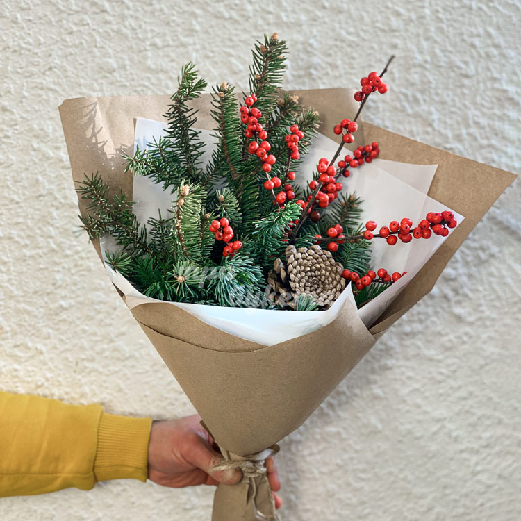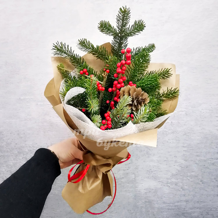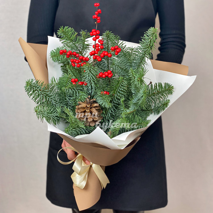 Зимний букет из ягод и веток хвои